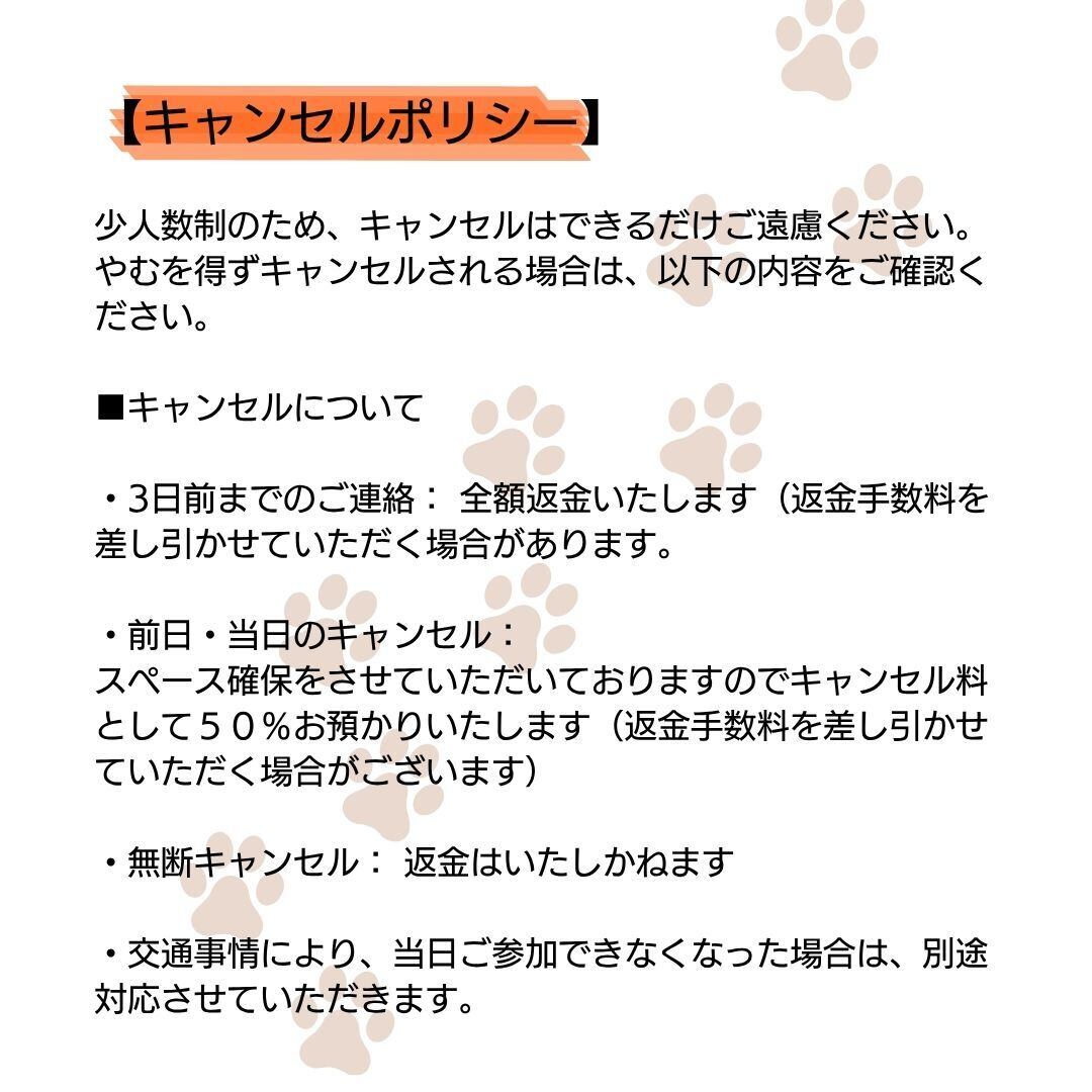少人数での開催のため、キャンセルはできるだけご遠慮ください。やむをえずキャンセルされる場合は、三日前までは全額のご返金、前日、当日のキャンセルは50%をキャンセル料として承ります。(いずれも手数料を差し引かせていただきます)無断キャンセルやレッスン開始時間を過ぎてのご連絡はご返金は致しかねます。