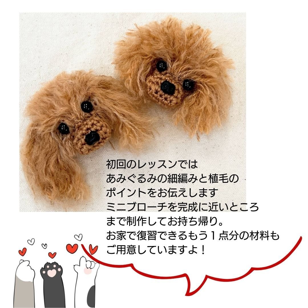 ミニブローチのテクニックはかぎ針の基本から組み立て・植毛の基本を学んでいただけます。